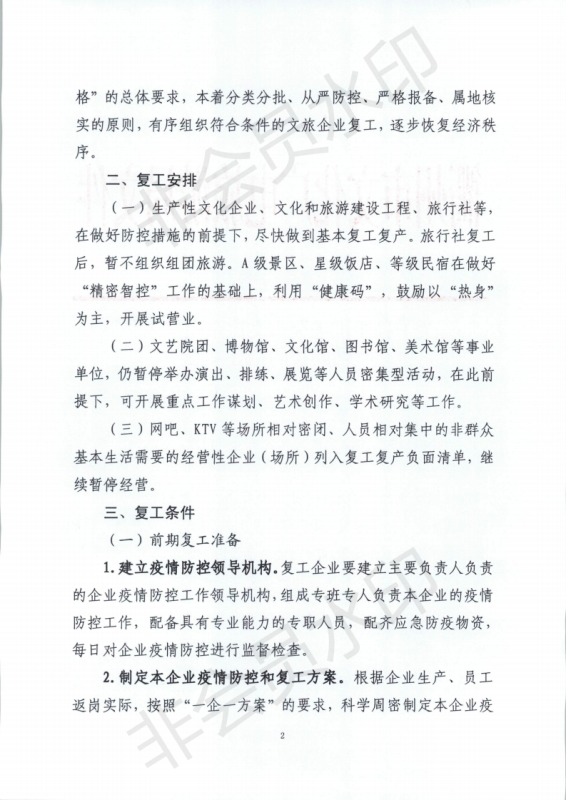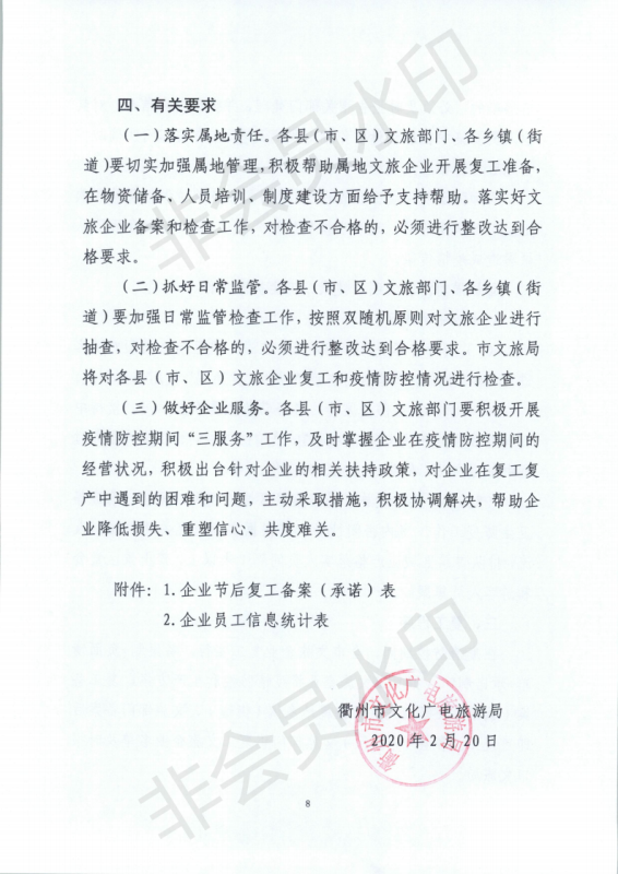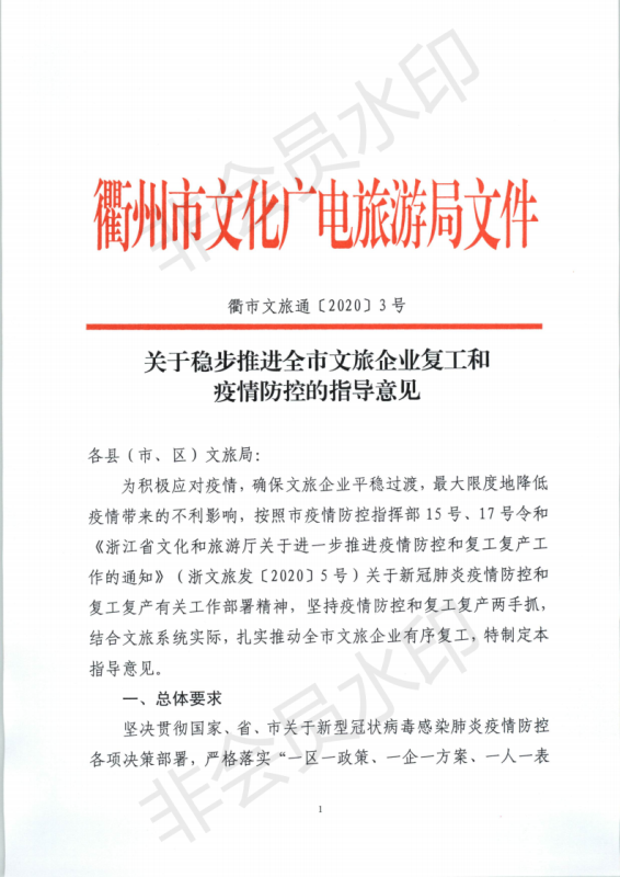 衢州市文化广电旅游局关于稳步推进全市文旅企业复工和疫情防控的指导意见