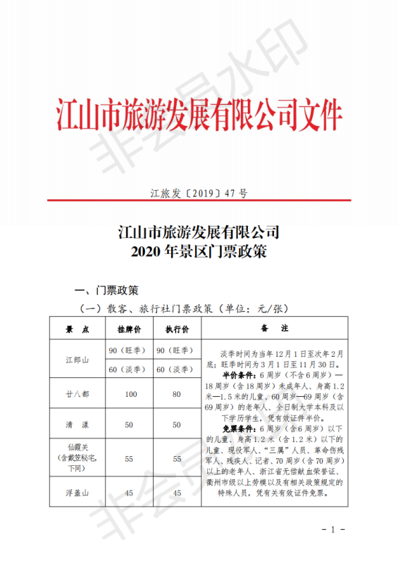 江山旅发 | 政策法规 - 江山市旅游发展有限公司2020年景区门票政策 Welcome