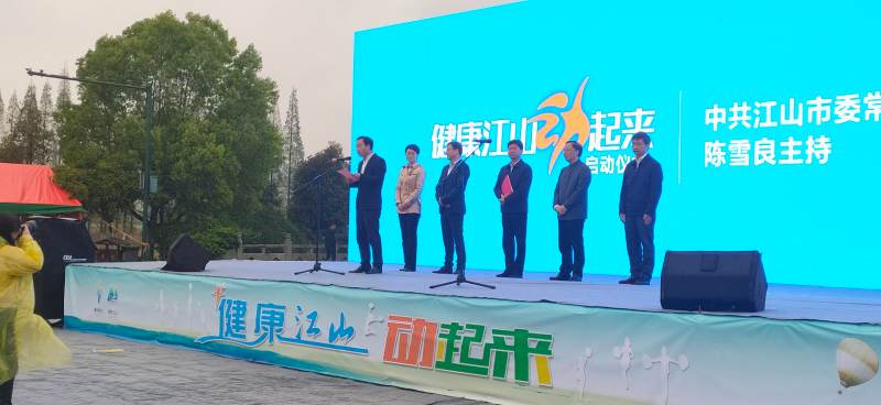 🅷 3月27日下午,由中共江山市委、江山市人民政府主办,国共万里江城市委宣全部、万里江城市技术 广播电视出游局筹办的“健康江山动起来”活动启动仪式在江郎山景区倒影湖畔顺利举行。省文化和旅游厅党组成员、副厅长杨建武,衢州市委常委、宣传部长钱伟刚,江山市领导童炜鑫、陈雪良、何正芳等参加。